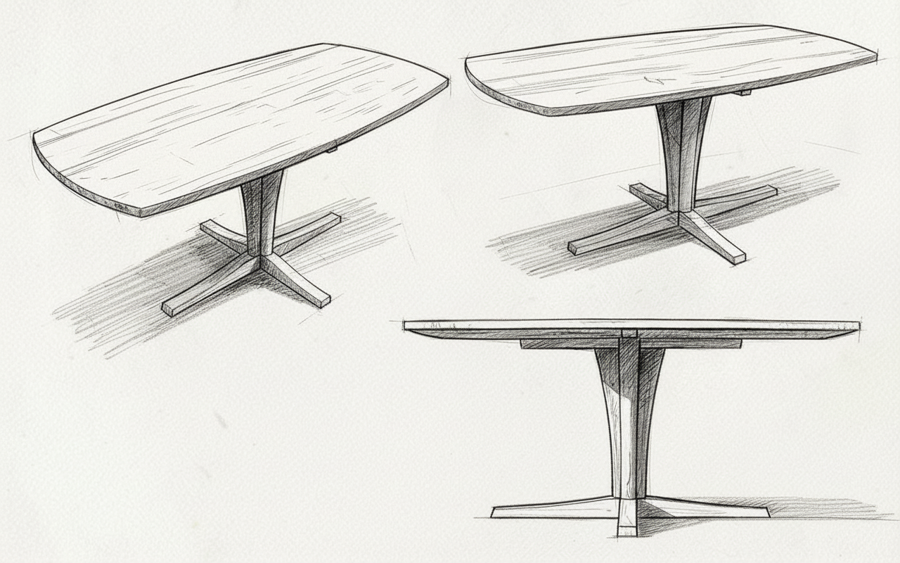 We begin with a conversation that leads to simple sketches in order to get particular ideas and needs down.